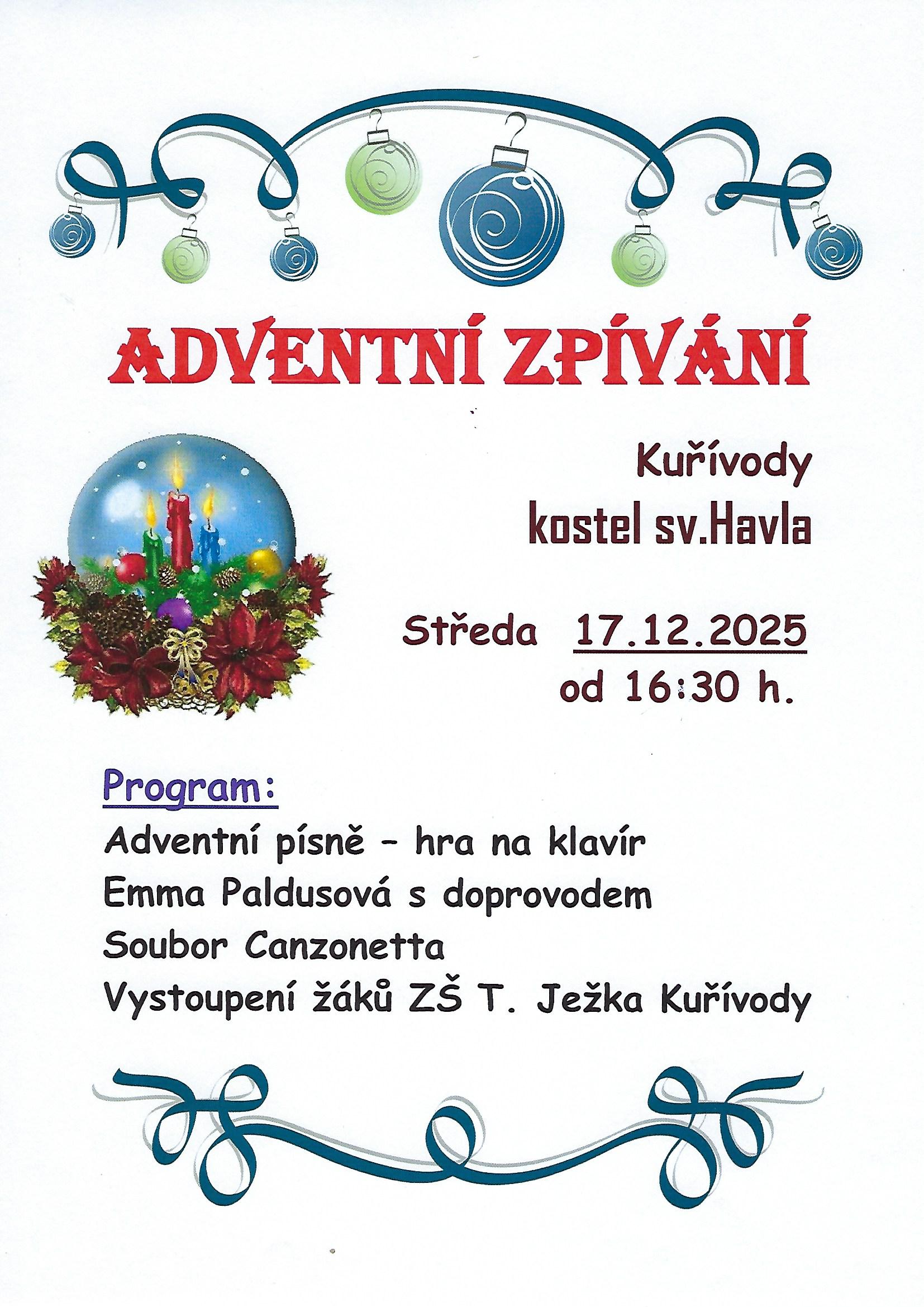 Zveme Vás na Adventní zpívání do kostele sv. Havla ve středu 17. 12.2025 od 16:30 h.